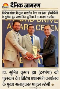 Dr. Sumit Jha – Rising Star of Bihar | Awarded by Prabhat Khabar for Excellence in Homeopathy